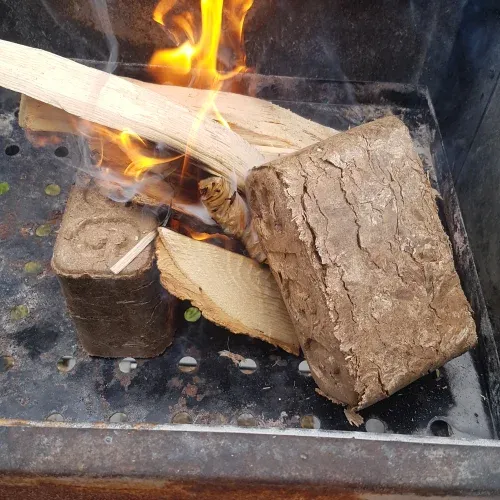 Beim Brennen dehnen sich Hartholzbriketts bis zu 50 % aus.